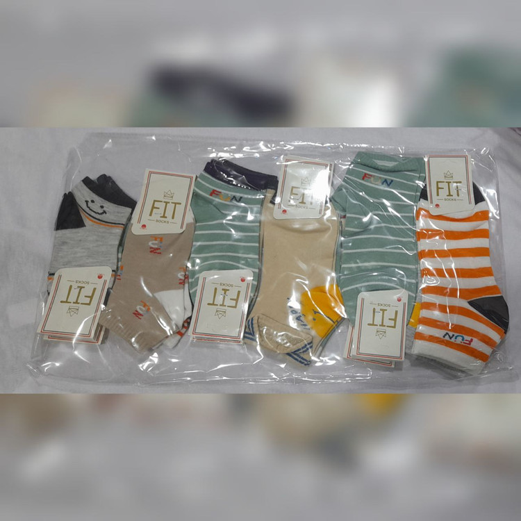 پک جوراب پسرانه FIT طرح راه‌راه و فانتزی | بسته‌ ۱۲ تایی پنبه‌ای رنگی اسپرت