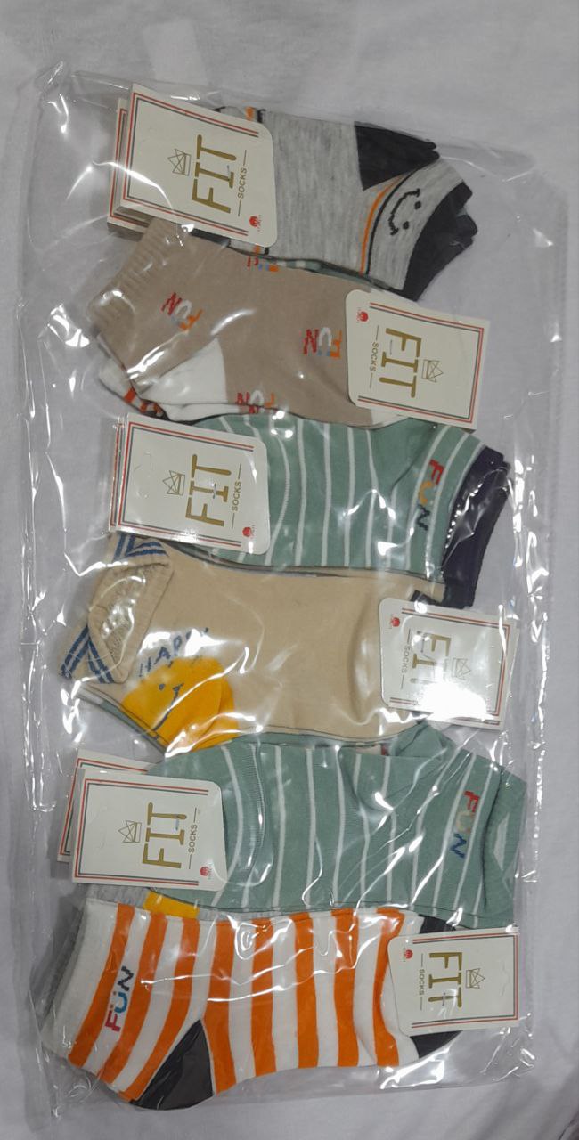 پک جوراب پسرانه FIT طرح راه‌راه و فانتزی | بسته‌ ۱۲ تایی پنبه‌ای رنگی اسپرت